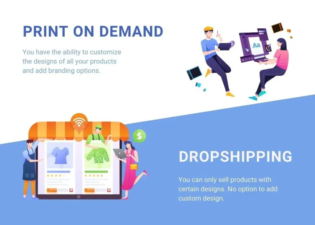 | Product customization | Extensive customization at the design level (graphics, variations, bundles). | Less control over customization unless working with specialized suppliers. |